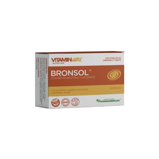 Bronsol Vitamin Way® favorece el bronceado de la piel gracias al aporte de carotenos de origen vegetal. Su fórmula ayuda a proteger la piel durante la exposición solar. Aporta nutrientes fotoprotectores orales con propiedades antioxidantes. Suplemento dietario a base de extractos de zanahoria, Bixa orellana y tomate, betacarotenos, vitaminas C y E. Libre de gluten. Sin TACC.